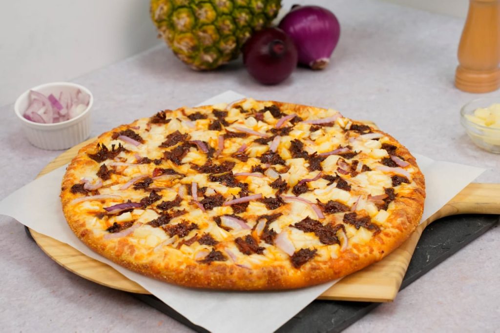 Una deliciosa y única pizza que es una verdadera explosión de sabor gracias a la combinación de los mejores ingredientes: Chilorio, piña, cebolla, queso y un delicioso toque de jalapeño. ¿Qué más se puede pedir?