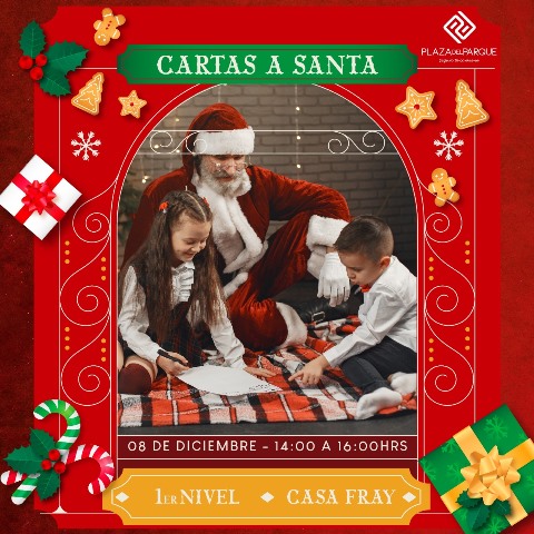 Todos los niños que visiten el centro comercial el domingo 8 de diciembre entre 2:00 pm y 4:00 pm podrán crear su carta para Santa Claus, ya que se les brindarán materiales para que puedan escribir, dibujar y plasmar sus deseos navideños. Para luego visitar la Villa Navideña, entregarle cada carta a Santa y a sus duendes, compartir con ellos, así como tomarse fotos para recordar este mágico momento.