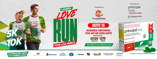 La carrera Love Run es patrocinada por Donovan Werke Internacional y su marca Principal Forte, quienes por quinta vez organizan este evento en beneficio de la sociedad guatemalteca.