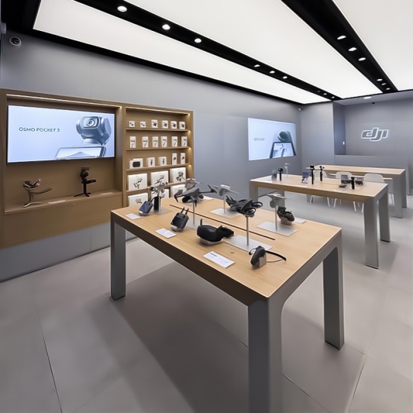 Y es que la interacción del usuario con sus productos es una de las prioridades del equipo de DJI, es por esto por lo que se diseñó un espacio adecuado para volar de manera segura los drones y así vivir la experiencia de vuelo completa. Sus acabados premium en iluminación, mobiliario y piso garantizan esta experiencia de primer nivel.