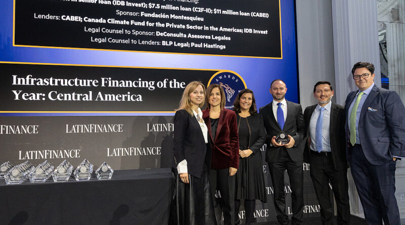 La distinción fue recibida en la ciudad de Nueva York por la Fundación Montesquieu, promotor del proyecto, representantes del Banco Centroamericano de Integración Económica (BCIE) y BID Invest; instituciones que junto al Fondo Climático Canadiense hacen posible esta iniciativa.