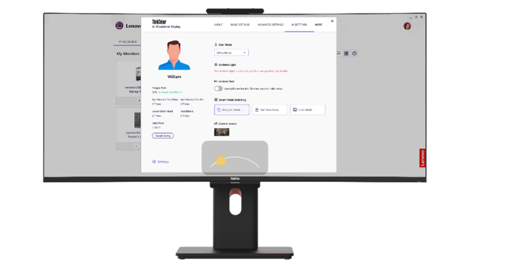 La inteligencia en los conceptos avanzados de pantalla de Lenovo se extiende desde la productividad del usuario hasta su bienestar. El Concepto de Pantalla Personalizada Impulsada por IA puede ofrecer soluciones visuales en tiempo real adaptadas a diversos usuarios. Diseñada como un concepto de pantalla multiusuario, la solución proporciona diferentes experiencias según los perfiles de los usuarios, la hora del día y la ubicación geográfica para realizar adaptaciones circadianas, con el fin de ofrecer un brillo de pantalla personalizado, una temperatura de color adecuada y un monitoreo del bienestar en tiempo real basado en la postura, la fatiga ocular y otros factores. El concepto de pantalla impulsado por IA proporciona lo último en comodidad y bienestar al comprender y adaptarse a las necesidades de cada usuario.