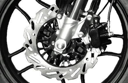 Su sistema de frenos delantero y trasero con disco perforado y lobulado, le ayudan a disipar más rápido el calor logrando un frenado más preciso y haciendo más seguros y agradables tus recorridos.