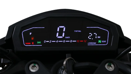 Velocímetro completamente digital basado en un estilo deportivo con indicador de kilómetros recorridos (odómetro), tacómetro (rpm) y velocímetro (km/h). Además, indicador de marcha, indicador de luces e indicador de gasolina para que estés informado sobre el estado de conducción de tu motocicleta.